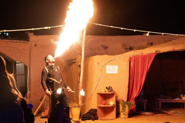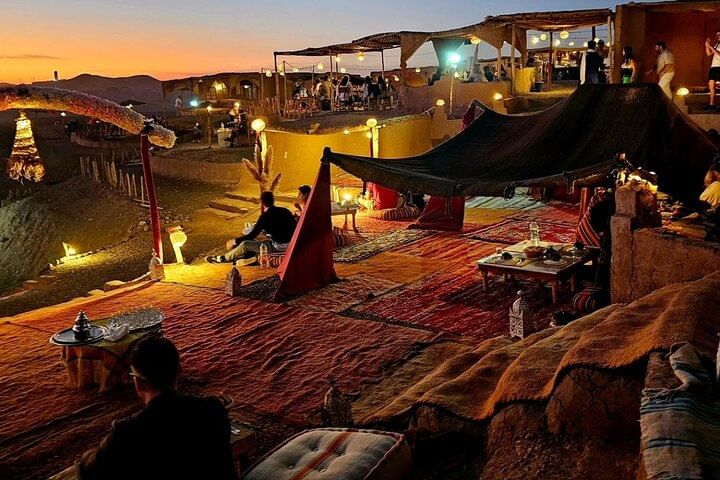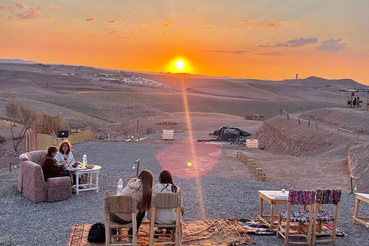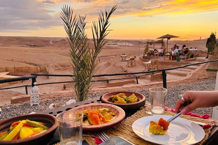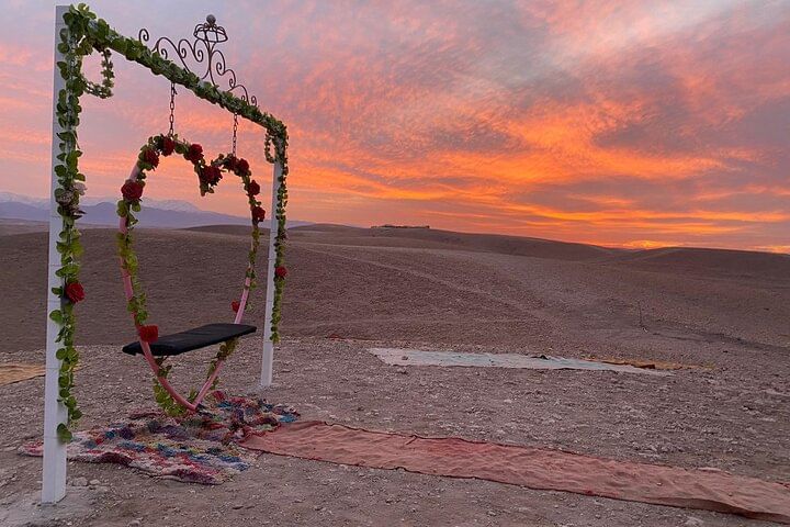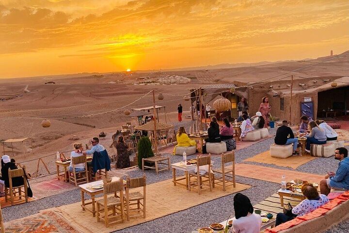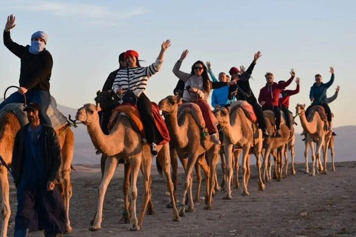 Join us for an unforgettable adventure in the Agafay Desert! Experience the thrill of a camel ride, soak in the breathtaking beauty of a sunset, and delight your taste buds with a traditional Moroccan feast. Discover the art of Argan oil production at a local women’s cooperative, and be mesmerized by a spectacular fire show under the stars. This is not just a trip; it’s a cultural journey you won’t want to miss!